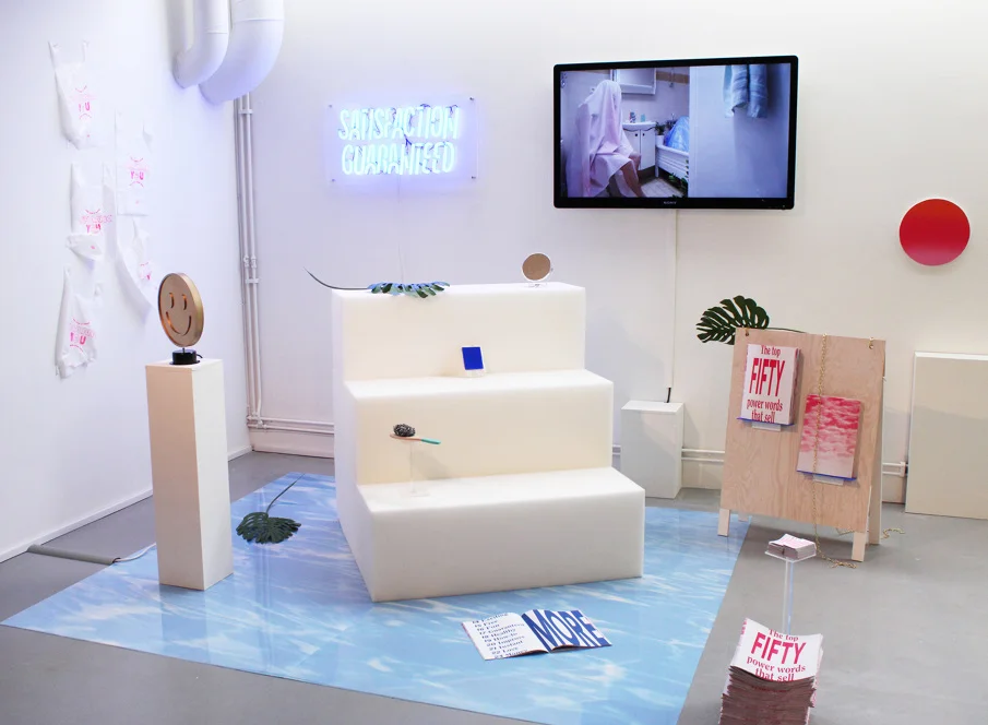 This project consists of a film, printed fabrics, a magazine liting the 50 top selling words and several 3D objects. What we see is how our society is brainwashed with marketing strategies. It emphasizes how surrealistic our reality has actuallybecome.
